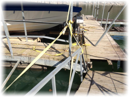 Our boat dock monitoring service helps prevent costly repairs to your boat dock like some you see on this page. By constantly monitoring lake levels and adjusting your boat dock to the latest lake level we prevent not only costly repairs but also refloats and fines from the Corp of Engineers.Call us and let us give you a free estimate on monitoring your dock today.